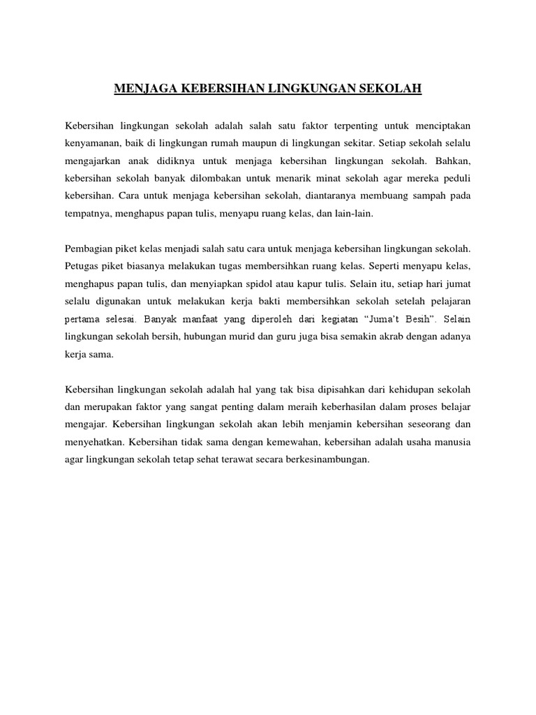 Menjaga Kebersihan Lingkungan Sekolah Pdf