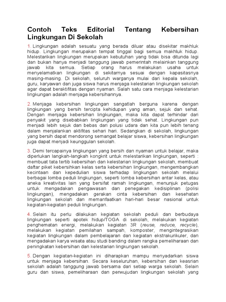 Contoh Teks Editorial Tentang Kebersihan Lingkungan Di Sekolah Pdf
